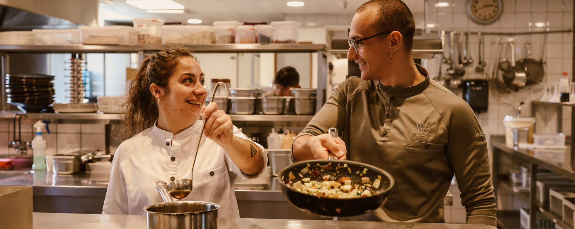Wanneer je binnenkomt, stap je meteen in de gezellige chaos. Je groet je collega’s in de keuken en hebt kort contact met de bar en bediening. Met de chef bespreek je de mise en place, bijzonderheden en eventuele grote groepen, waarna de taken worden verdeeld. Samen zorg je dat de lunch soepel verloopt en alles klaarstaat voor een drukke avond. Tussendoor is er ruimte voor een grapje, een compliment en even checken of de gasten tevreden zijn. Voor je het weet, is je dienst voorbij!